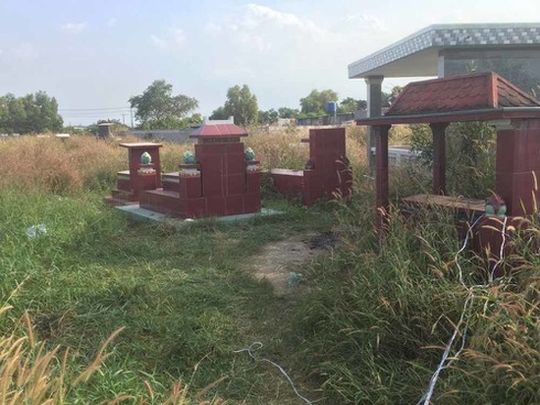 Khu vực phát hiện bộ xương lạ nghi là xương người bị thiêu đốt trong nghĩa trang. |