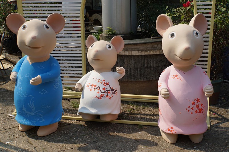 Do năm tới là "năm con chuột" nên hình ảnh loài vật này có số lượng áp đảo, được thể hiện bằng nhiều loại vật liệu, kích thước khác nhau với dáng vẻ vui tươi, tinh nghịch. |
