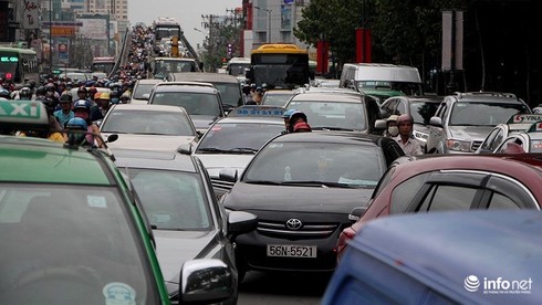 Các tuyến đường quanh sân bay Tân Sơn Nhất thường xuyên kẹt nặng vào các dịp lễ Tết. |