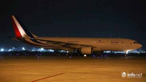 Chiếc chuyên cơ chở Tổng thống Pháp trong một lần hạ cánh tại sân bay Tân Sơn Nhất vào ban đêm. |