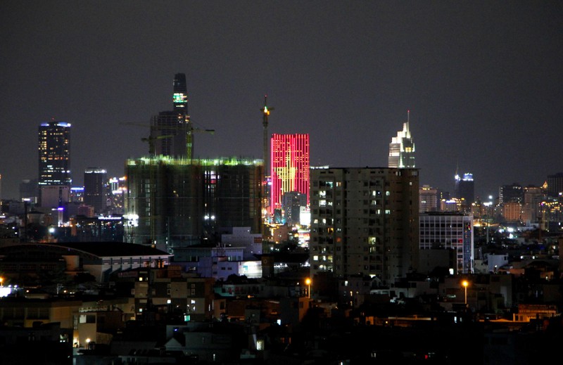 Cách đó gần 2km tòa tháp cao nhất Đông Nam Á - Landmark 81 cũng sẵn sàng cho màn trình diễn pháo hoa nghệ thuật. Dù đã hạ so với những hôm trước nhưng tối này nhiệt độ tại TP.HCM vẫn ở ngưỡng 30 độ C, không khí rất ngột ngạt.