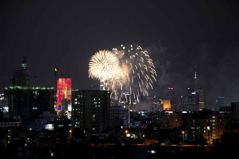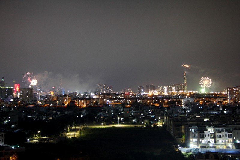 Không những không phải chen lấn trong không khí ngột ngạt, nhiều người sống ở xa trung tâm thành phố còn có thể cùng lúc ngắm 2 màn pháo hoa từ xa.