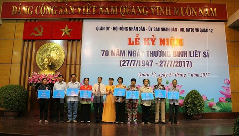 Nhân dịp này, lãnh đạo Quận 12 đã tổ chức nhiều đoàn đến thăm, tặng quà cho các gia đình chính sách có hoàn cảnh khó khăn, bệnh tật với tổng số tiền gần 1,5 tỷ đồng.
