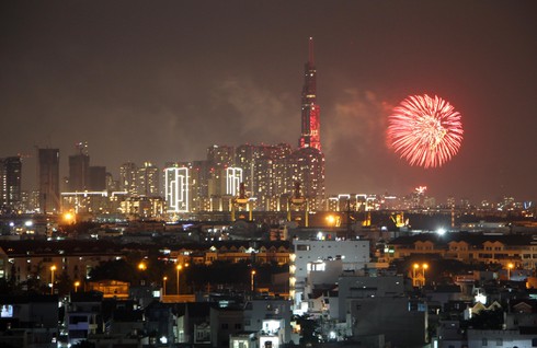 Pháo hoa được bắn tại tòa nhà cao nhất thành phố trong dịp Tết Nguyên đán 2019. |