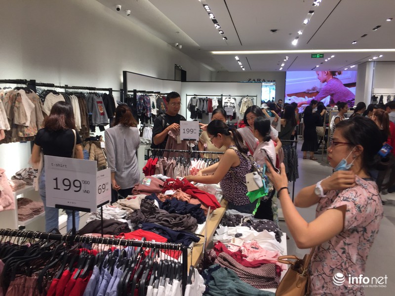 Do vậy, khách hàng vẫn đổ xô đến các cửa hàng này mua sắm, có nơi khách hàng phải xếp hàng dài chờ thử đồ. Bên cạnh quần áo, các mặt hàng như giày dép, túi xách, phụ kiện… cũng đưa ra nhiều mức giảm giá sâu, từ 20% - 70%.