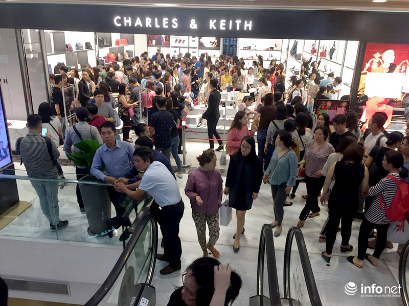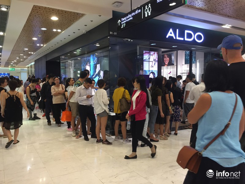 Người mua xếp hàng dài trước cửa hàng ALDO tại trung tâm thương mại Vincom Đồng Khởi để được vào mua hàng... |