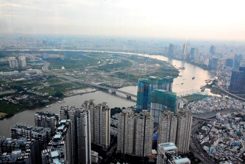 Một góc Khu đô thị Thủ Thiêm nhìn từ tòa nhà Land mark 81. |