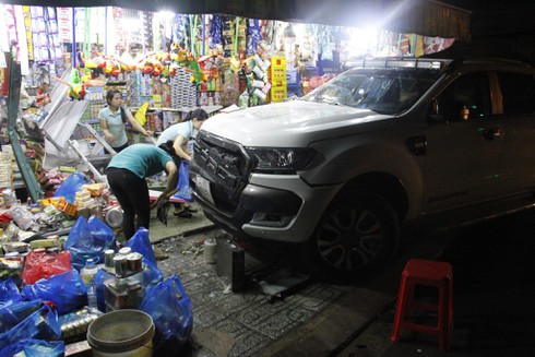 Hiện trường vụ tai nạn, xe bán tải lao vào cửa hàng tạp hóa |