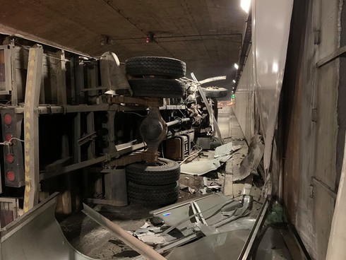 TP.HCM: Xe tải tông đuôi xe khách giường nằm rồi đâm tiếp vào vách hầm Thủ Thiêm