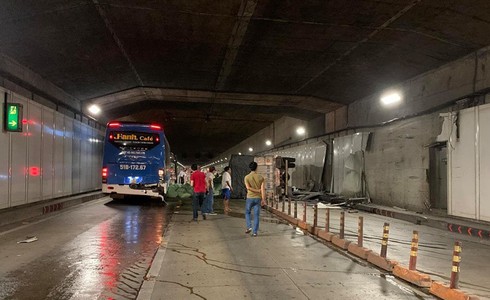 Vụ việc cũng khiến hàng chục hành khách trên xe khách một phen hoảng loạn, hai phương tiện nằm chắn hết các làn đường trong hầm Thủ Thiêm.