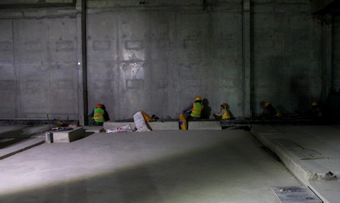 Các công nhân đang làm việc tại một đoạn hầm ngầm của tuyên metro số 1. |