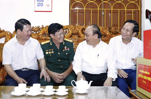 Thủ tướng Nguyễn Xuân Phúc cũng đến thăm, tặng quà một số gia đình thương binh, người có công tiêu biểu.
