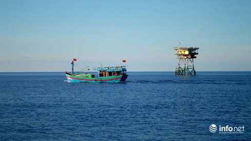 Một tàu cá đi ngang qua nhà giàn tại thềm lục địa phía Nam. |