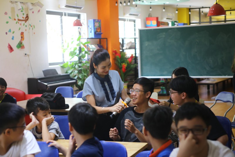 Cô giáo Thanh Mai, hòa hứng truyền tải những kỹ năng sống cho các em. |