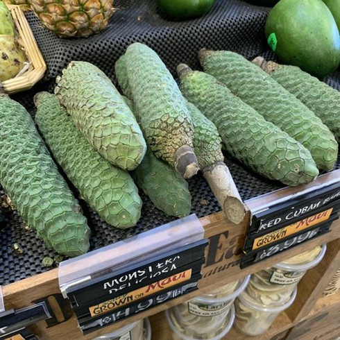 Loại quả này còn có tên là "quái vật" vì từ "Monstera" đã có nghĩa là "quái vật", còn từ "deliciosa" có nghĩa là ngon. |