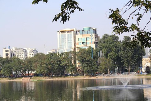 Một trạm BTS thân thiện môi trường được MobiFone lắp đặt tại hồ Thiền Quang. |