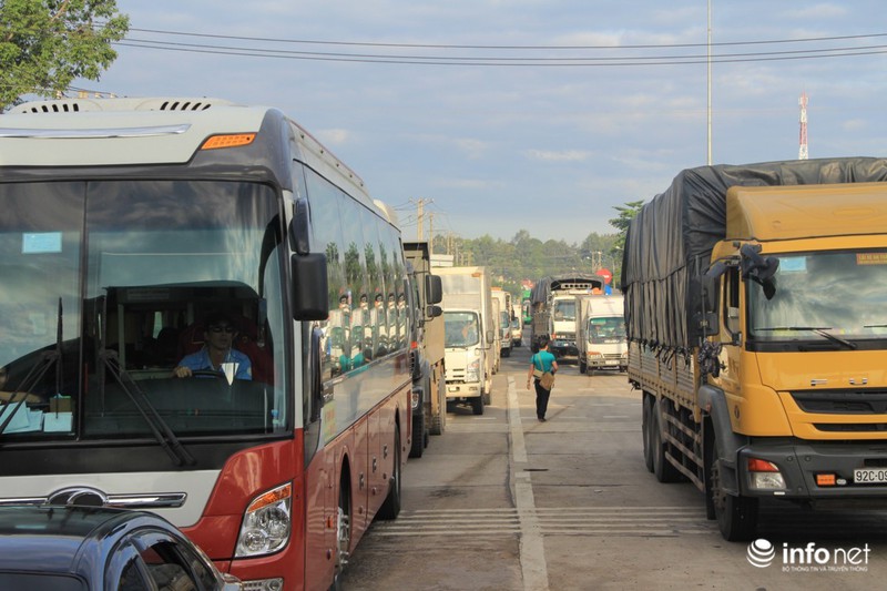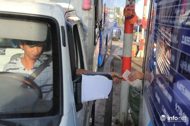 Ghi nhận tại đây, các tài xế đã dùng tiền lẻ để mua vé, khiến nhân viên tại các cabin không thể đếm kịp. Trong khi đó, hàng trăm phương tiện khác xếp hàng nối đuôi nhau dài khoảng gần 2km.