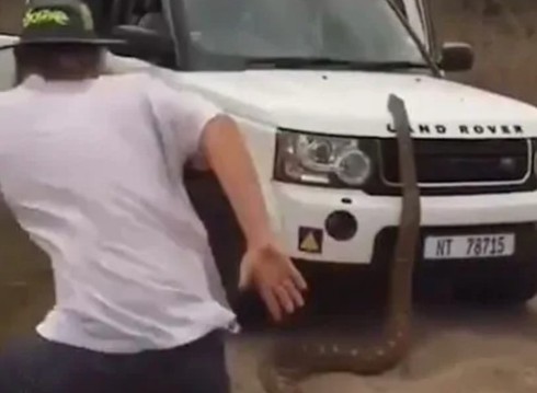 Trăn độc châu Phi khổng lồ đuổi theo xe của khách du lịch