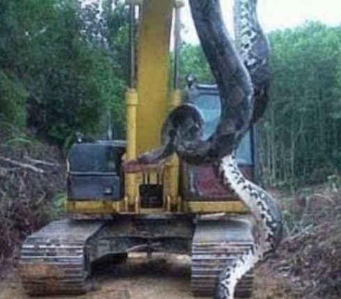 Công nhân xây dựng đập Belo Monte phát hiện con trăn sau một vụ nổ ở thành phố Altamira, miền bắc Brazil. Con trăn sau đó bị xích vào một chiếc cần cẩu và để lộ khoảng bụng đốm màu vàng.