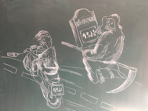 Tranh biếm họa bằng phấn trắng trên bảng đen của giáo viên Thanh Hóa gây 'sốt'