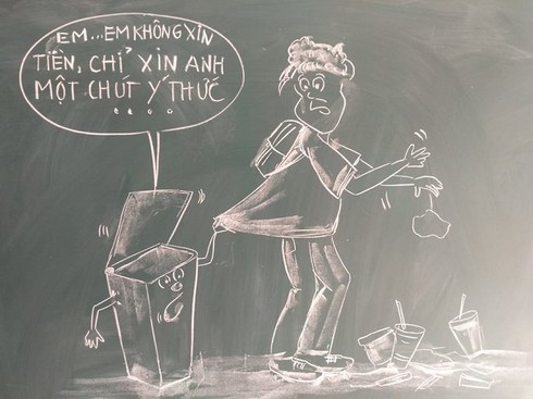 Khi vẽ những hình ảnh này lên bảng, thầy Hùng luôn đặt câu hỏi: Tranh vẽ gì? Ý nghĩa hàm ý của bức tranh? Việc làm đó đúng hay sai. Nếu đặt mình vào tình huống đó, các em sẽ giải quyết như thế nào ? |