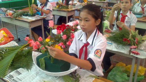 Học sinh học nghề cắm hoa |