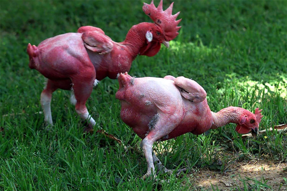 Nuôi gà thịt ở những vùng có khí hậu nóng đòi hỏi phải có hệ thống máy làm mát đắt tiền để kiểm soát nhiệt độ của chúng. Để tiết kiệm năng lượng và chi phí cho người chăn nuôi, các nhà khoa học Israel đã nảy ra ý tưởng tạo ra một giống gà không mọc lông.