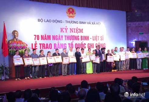 Phát biểu tại buổi lễ, Bộ trưởng Bộ LĐ-TBXH Đào Ngọc Dung cho biết, hiện nay cả nước đã xác nhận trên 9 triệu người có công với cách mạng (trong đó 1,2 triệu liệt sĩ, 127.000 Bà mẹ Việt Nam anh hùng, 800.000 thương binh, 110.000 người hoạt động kháng chiến và con đẻ của họ bị nhiễm chất độc hóa học được công nhận).
