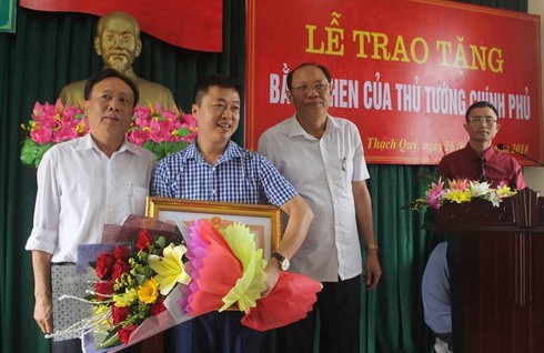 Theo đó, vào chiều ngày 26/3, Ban Thi đua - Khen thưởng tỉnh Hà Tĩnh đã trao tặng Bằng khen của Thủ tướng chính phủ cho anh Dương Hải Cường vì hành động dũng cảm nhảy xuống sông cứu người.