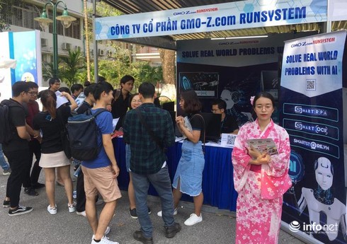 Gian hàng giới thiệu sản phẩm của GMO-Z.com Runsystem tại Ngày hội Trí tuệ nhân tạo Việt Nam 2019. |