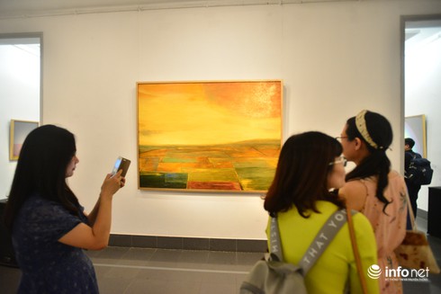 Nhiều du khách nước ngoài ấn tượng với các tác phẩm trong buổi triểm lãm |