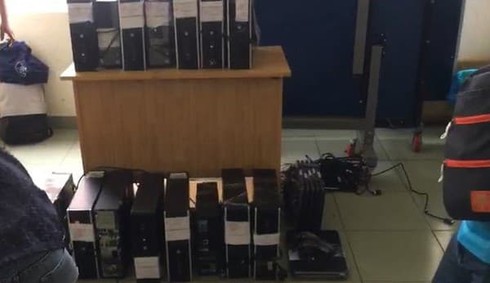 Khám xét trụ sở công ty trên, Công an thu giữ 7 CPU, 19 máy tính, 23 ĐTDĐ, nhiều hợp đồng cho vay…