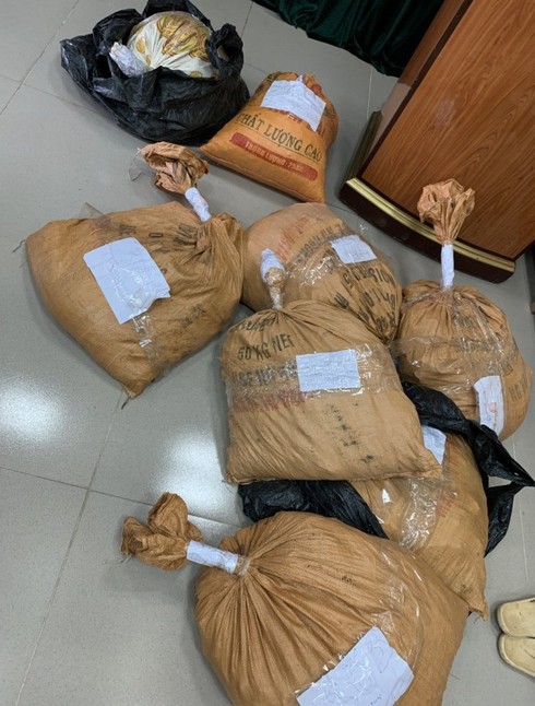 Căn cứ lời khai của các đối tượng, cơ quan Công an đã truy tìm, phát hiện thêm quanh khu vực giao hàng có 5 bao lác, bên trong đựng các viên màu xám với nhiều hình dạng, kích thước khác nhau, với tổng trọng lượng là 154kg, được xác định là thuốc nổ.
