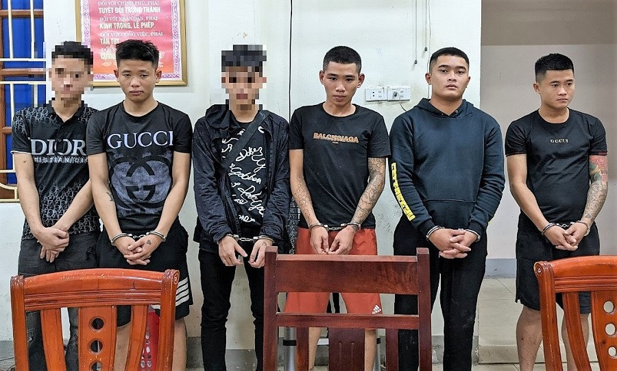 Danh tính 06 đối tượng bị gồm: Lê Thanh Tú (SN 2000), Nguyễn Tiến Kiên (SN 2000), Nguyễn Xuân Đạt (SN 2004), Lê Đức Quang (SN 2001), N.T.T (SN 2006), cùng trú tại xã Nghi Trung, huyện Nghi Lộc và N.H.V. (SN 2007, trú tại xã Nghi Hoa, huyện Nghi Lộc).