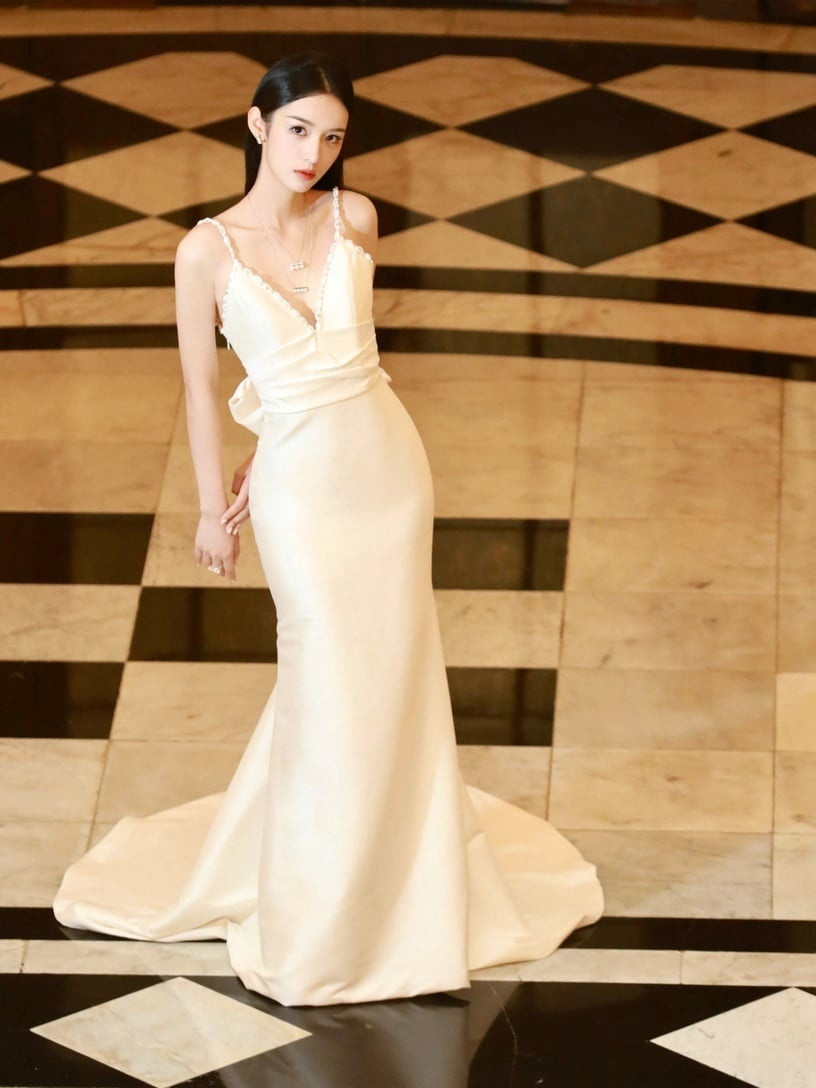 Khi Dương Mịch tham dự Lễ hội Thường niên Nghe nhìn Internet 2022, chiếc váy cô mặc thật tuyệt vời. Chiếc áo dài trắng thêu đính sequin được chia thành hai phần thiết kế trên và dưới đã tôn lên vòng eo con kiến của Dương Mịch.