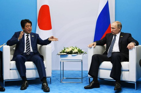 Thủ tướng Nhật BảnShinzo Abe gặp mặt Tổng thống Nga Vladimir Putin ở Hamburg hồi tháng Bảy. |