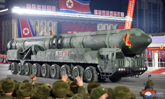 Hình ảnh cuộc duyệt binh tại thủ đô Bình Nhưỡng của Triều Tiên đêm 8/2 được Reuters phân tích hôm 15/2 cho thấy xe chở đạn kiêm bệ phóng tên lửa đạn đạo xuyên lục địa (ICBM) loại mới của Triều Tiên được treo lá cờ màu đỏ viền vàng chưa từng xuất hiện trong những sự kiện trước đây.