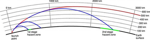 Đường bay của tên lửa ICBM cải tạo từ Unha |