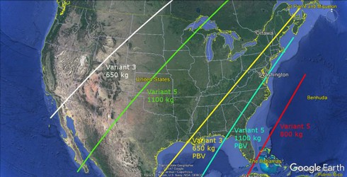 Nếu tên lửa Triều Tiên được phóng về hướng Đông Bắc để tận dụng vòng quay của Trái Đất, tầm bắn của các loại tên lửa này cũng được nâng lên đáng kể. Hình dưới đây cho thấy tầm bắn tối đa của mô hình 3 với đầu đạn nặng 650kg, cùng mô hình 5 với đầu đạn 800 và 1.100kg. Có thể thấy rằng, mô hình 5 có khả năng bắn tới thành phố Miami (Mỹ) với đầu đạn 800kg mà không cần sử dụng thiết bị nâng cao tầm bắn. Nếu được trang bị thiết bị nâng cao tầm bắn PBV, mô hình 5 có thể bắn tới gần vùng biển phía Đông nước Mỹ với đầu đạn 1.100kg.