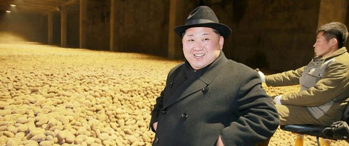 Lãnh đạo Kim Jong-un đến thăm một nhà máy khoai tây ở Triều Tiên. |
