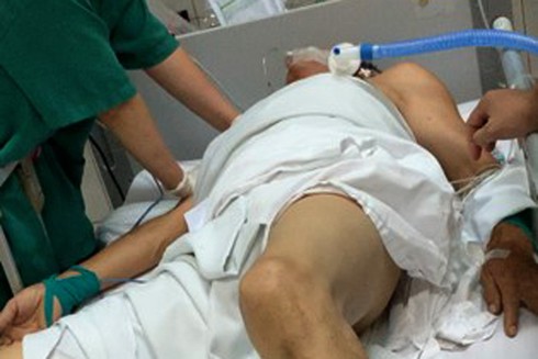 Ngay lập tức, bệnh nhân được các bác sĩ hồi sức đặt máy thở, dùng thuốc trợ tim đường tĩnh mạch rồi chuyển mổ cấp cứu khẩn cấp.