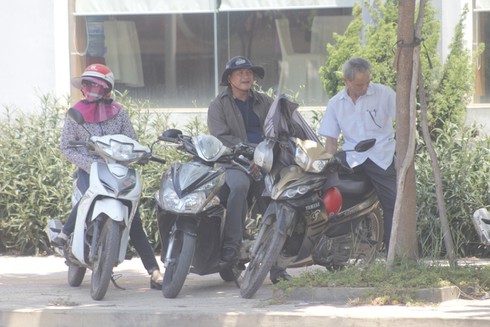 Dưới cái nắng gần 40 độ C, nhiều phụ huynh chờ con dưới tán cây ven đường. |