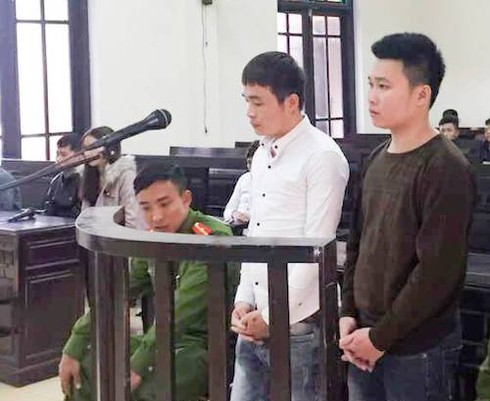 Hai bị cáo Thọ và Hóa tại phiên tòa. |
