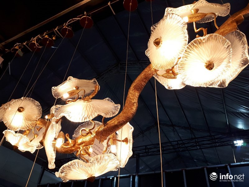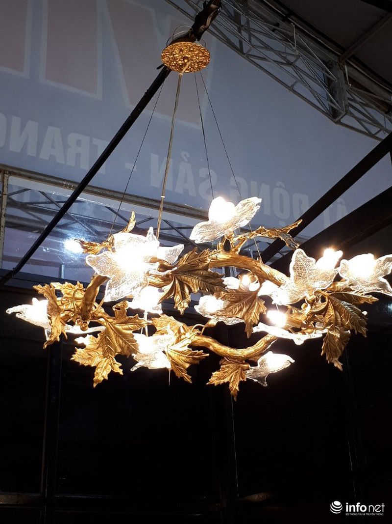 Thân đèn y như một chuỗi hoa lan mạ đồng, chiếc đèn chùm thả dài hơn 3m, có giá hơn 73 triệu đồng. |