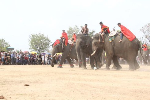 Thú vị nhất của hội voi Buôn Đôn là phần thi voi đá bóng. Theo đó, 8 con voi được chia làm 2 đội tranh tài trong 2 hiệp đấu với thời gian mỗi hiệp 10 phút.