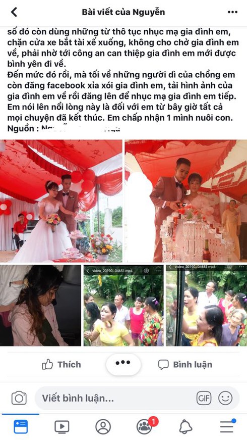 Đến mức đó rồi, tối về những người dì của chồng em còn đăng Facebook xỉa xói gia đình em, tải hình ảnh của gia đình em về rồi đăng lên để nhục mạ gia đình em tiếp.