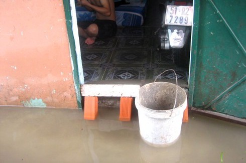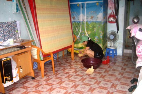 Cùng chung hoàn cảnh trên là các hộ dân đang thuê trọ tại nhà số 162, đường Kha Vạn Cân, khu phố 3. Mặc dù trước cửa phòng trọ đều xây những hàng gạch cao hơn nền nhà từ 30 – 40cm, nhưng vào tối qua nước vẫn “tràn vào như thác”. Mọi người tại đây chỉ còn biết đối phó bằng cách “trực chiến” cùng xô chậu…