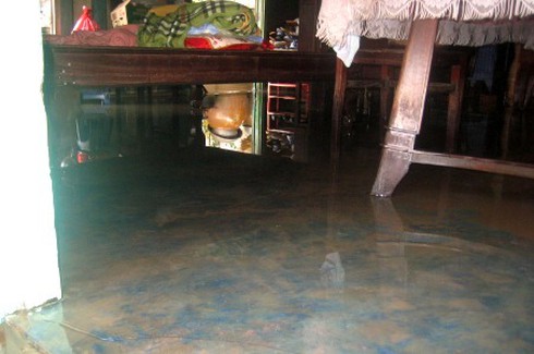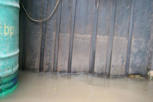 Tuy nhiên những nỗ lực của mọi người nơi đây dường như chẳng thấm vào đâu khi mỗi lần có xe lớn chạy qua, từng đợt sóng vẫn tràn qua “đập” vào nhà. Hiện tại nền căn nhà của anh Bé (và đa số những hộ dân sống tại đây) đều thấp hơn mặt đường từ 40-80cm, chính vì thế mọi người dường như “bất lực” trước “bà Thủy”.