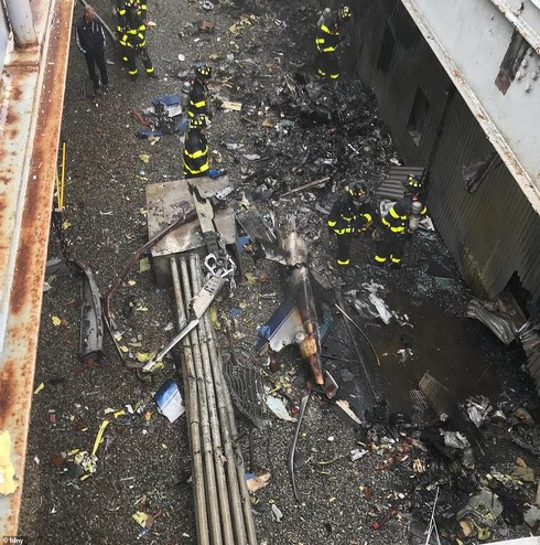 Hiện trường vu tai nạn trực thăng lao vào nóc tòa nhà 54 tầng, dân Mỹ hoảng sợ tưởng khủng bố 11/9. |