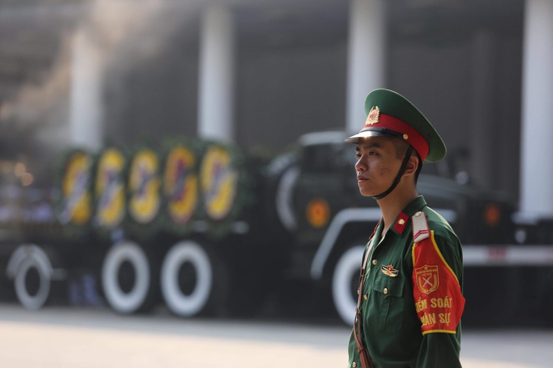 Bên ngoài Nhà Tang lễ Quốc gia, các lực lượng làm nhiệm vụ đã sẵn sàng vào vị trí. |